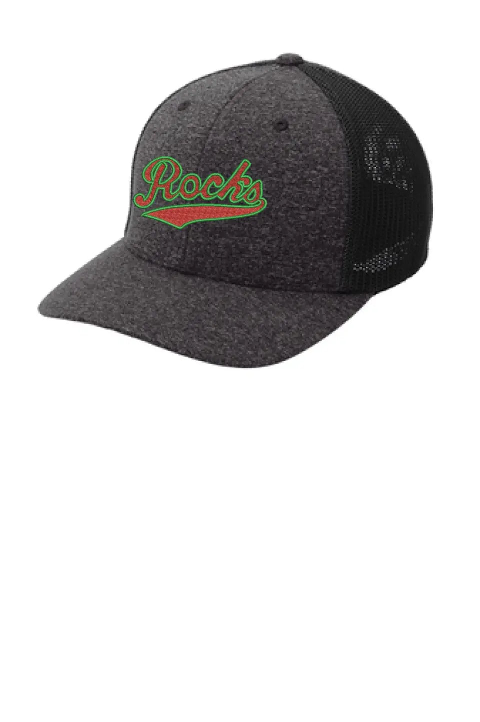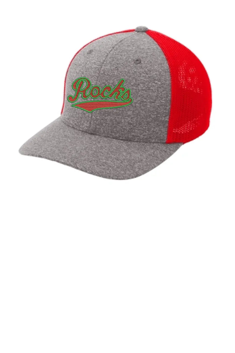 92/8 poly/PU spandex jersey front panels; 95/5 poly/PU spandex mesh mid and back panels (Grey Heather), 95/5 poly/PU spandex jersey front panels; 95/5 poly/PU spandex mesh and mid back panels (Dark Charcoal Heather)