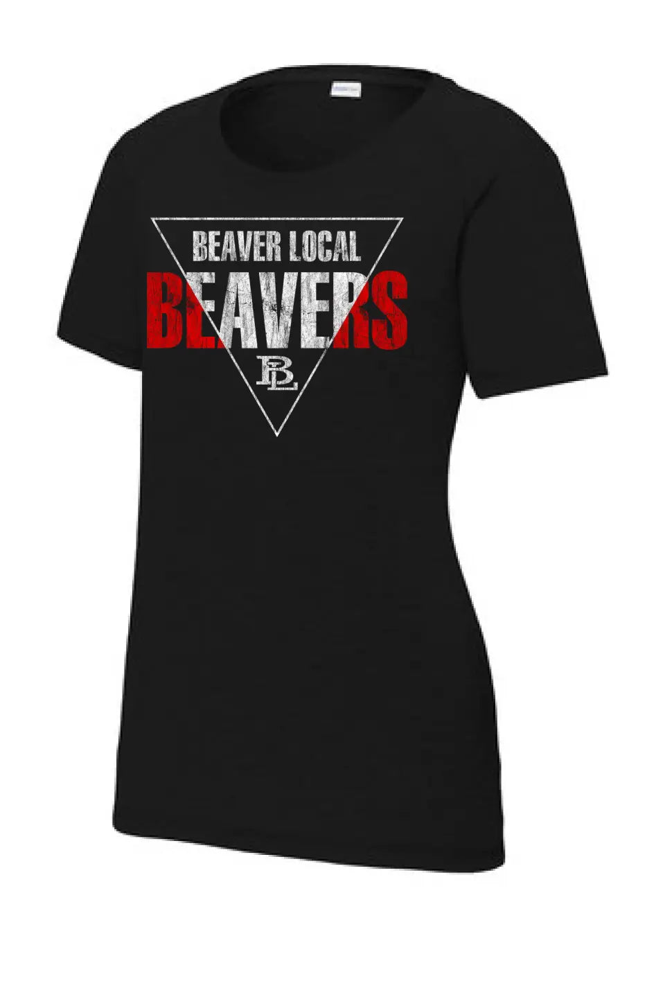 Beaver Local 2023-07 Distressed Ladies PosiCharge Tri-Blend Wicking Scoop Neck Raglan Tee