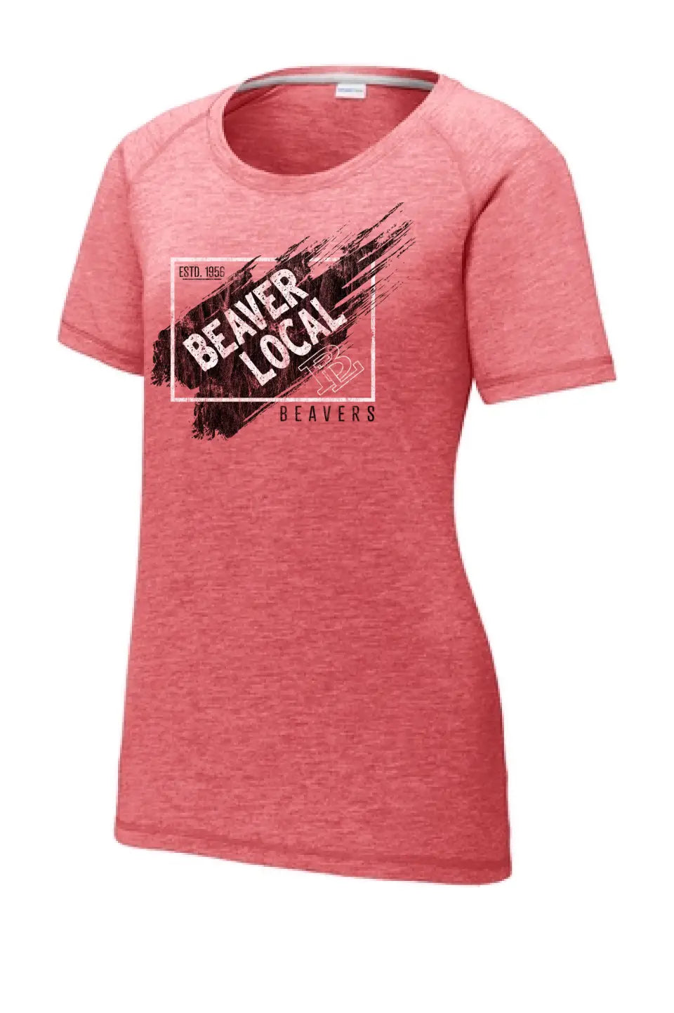 Beaver Local 2023-17 Distressed Ladies PosiCharge Tri-Blend Wicking Scoop Neck Raglan Tee
