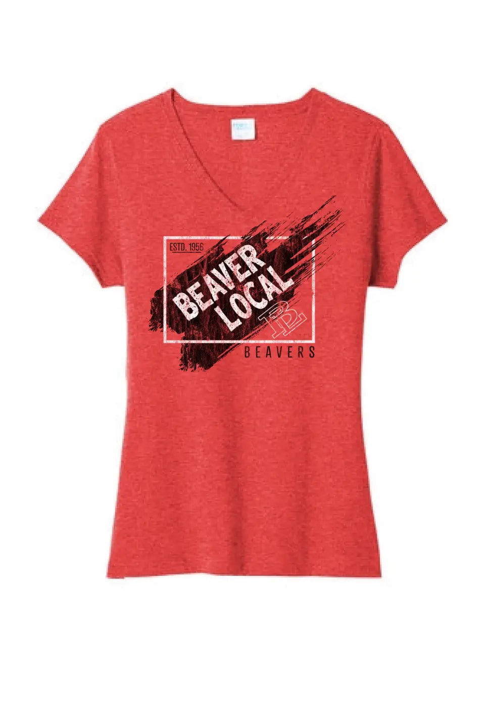 Beaver Local 2023-17 Distressed Ladies Tri-Blend V-Neck Tee