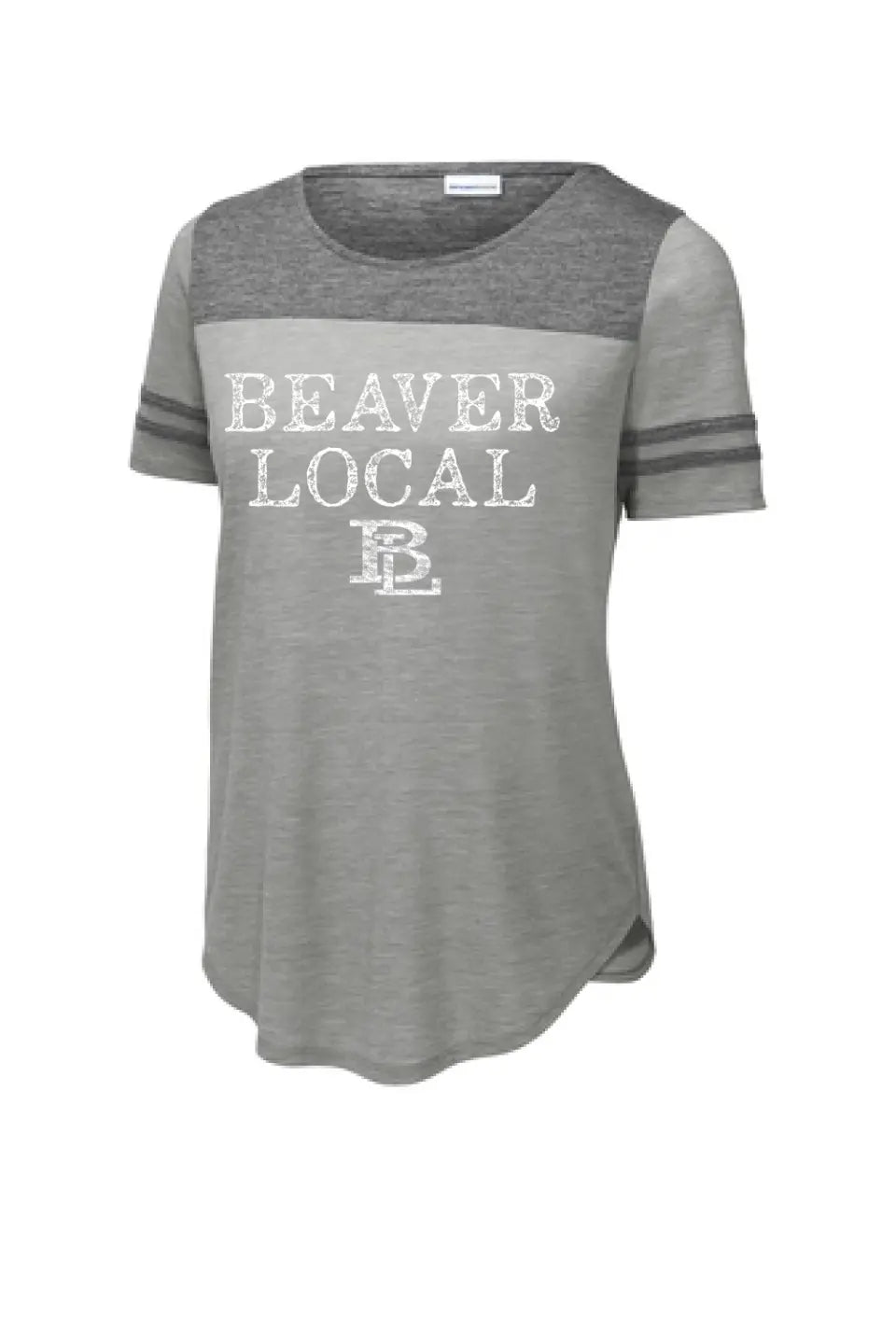 Beaver Local Distressed Ladies PosiCharge Tri-Blend Wicking Fan Tee