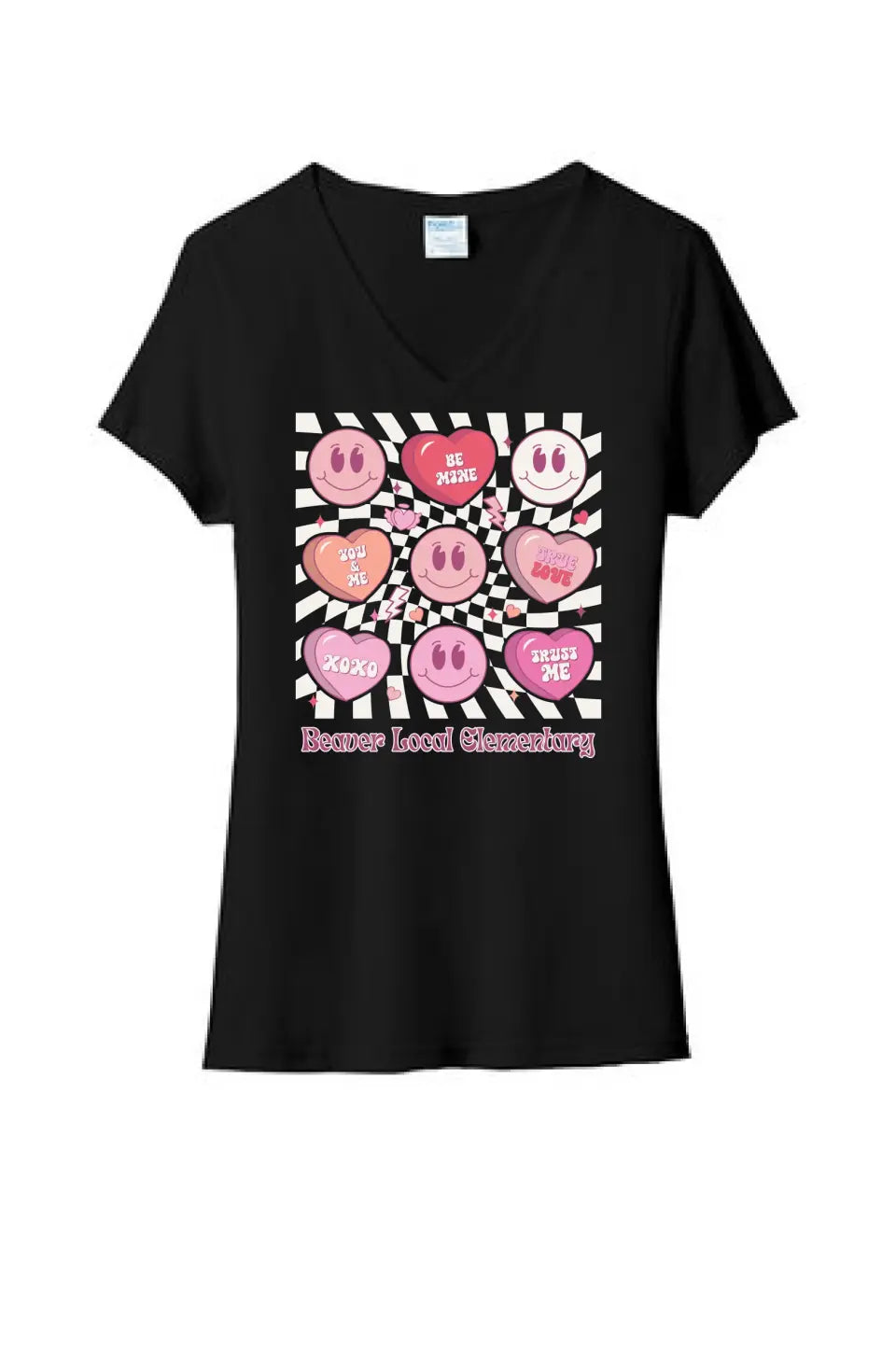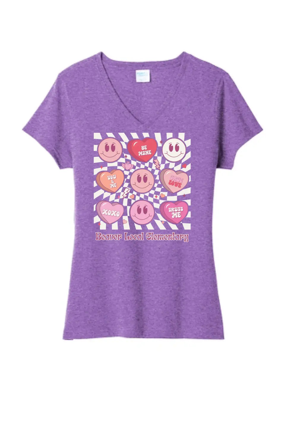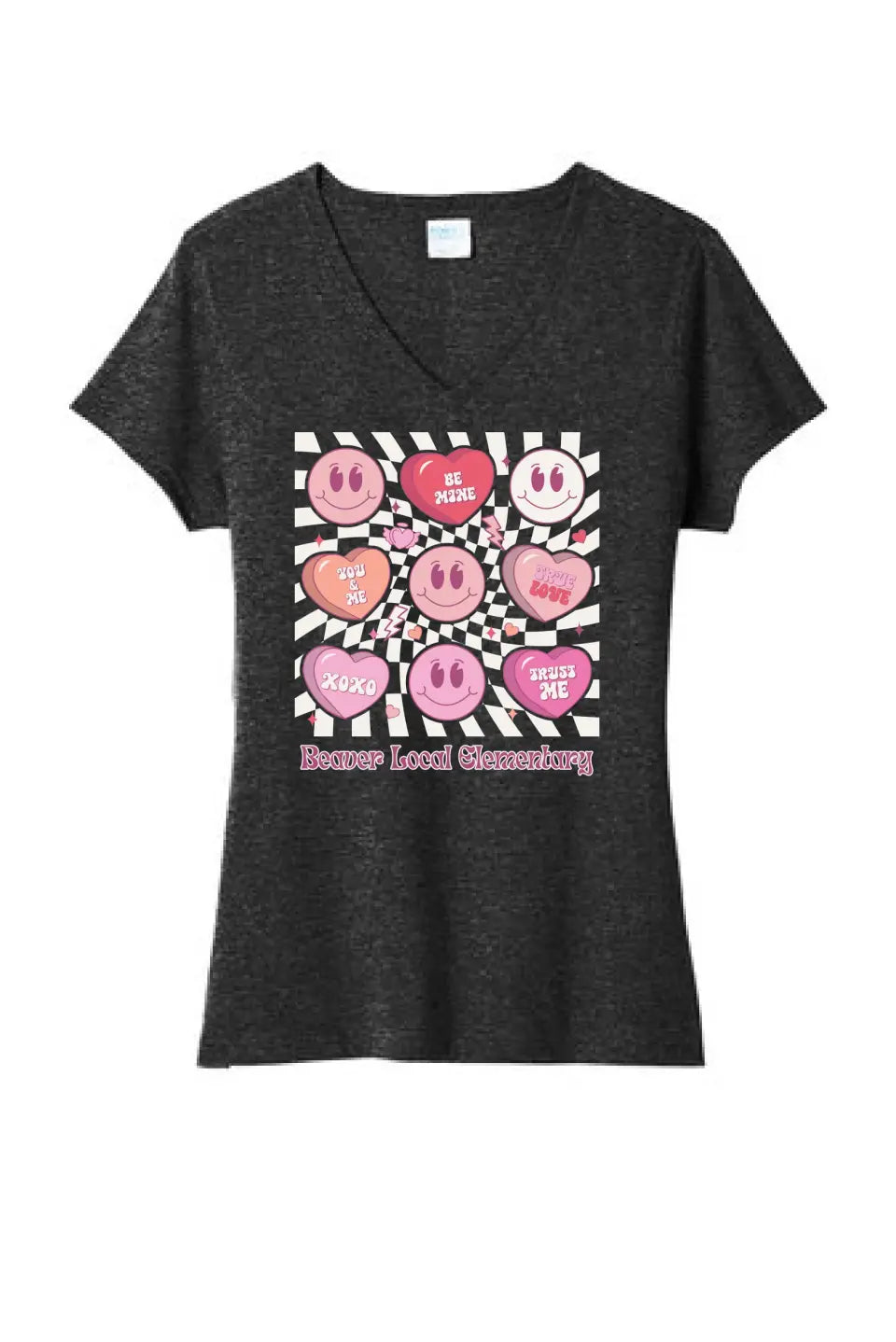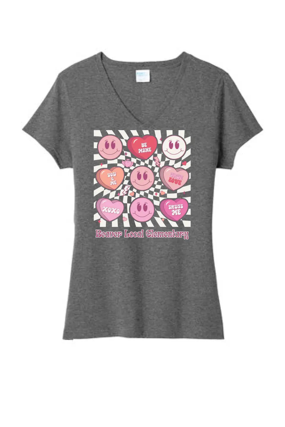 Beaver Local Elem Hearts Ladies Tri-Blend V-Neck Tee