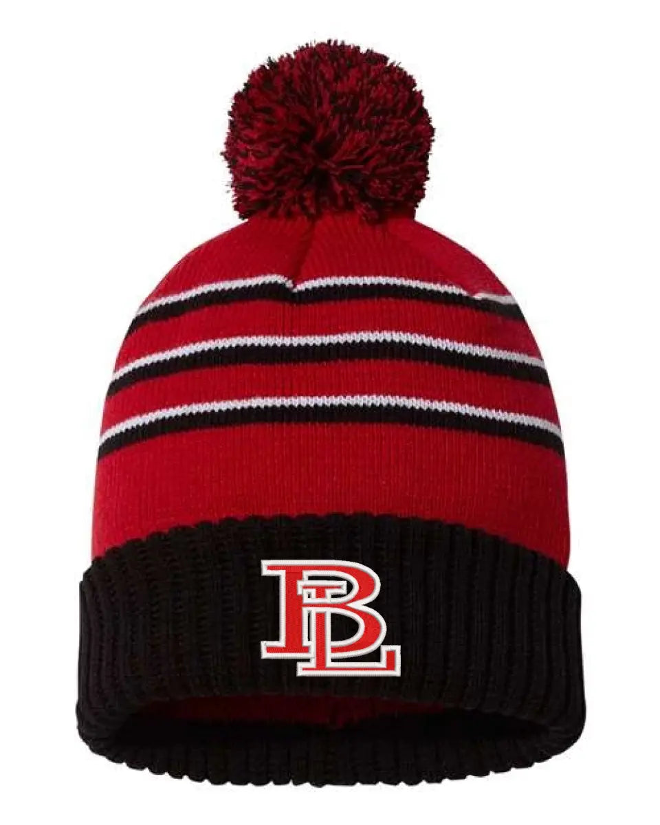 Beaver Local Red Embroidery Stripe Pom Cuffed Beanie