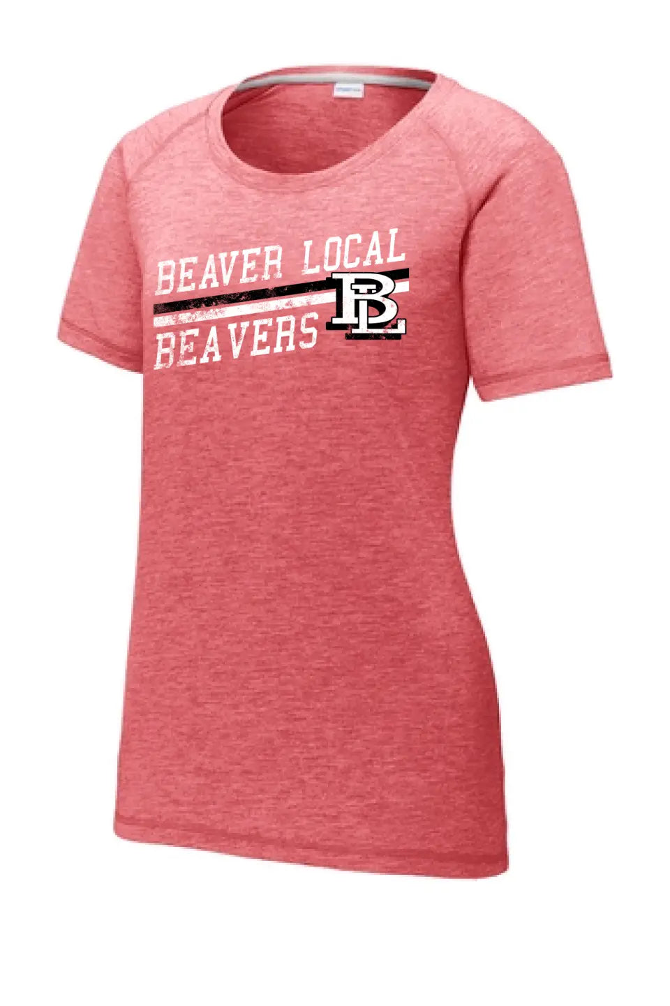 Beaver Local Rising Ladies PosiCharge Tri-Blend Wicking Scoop Neck Raglan Tee