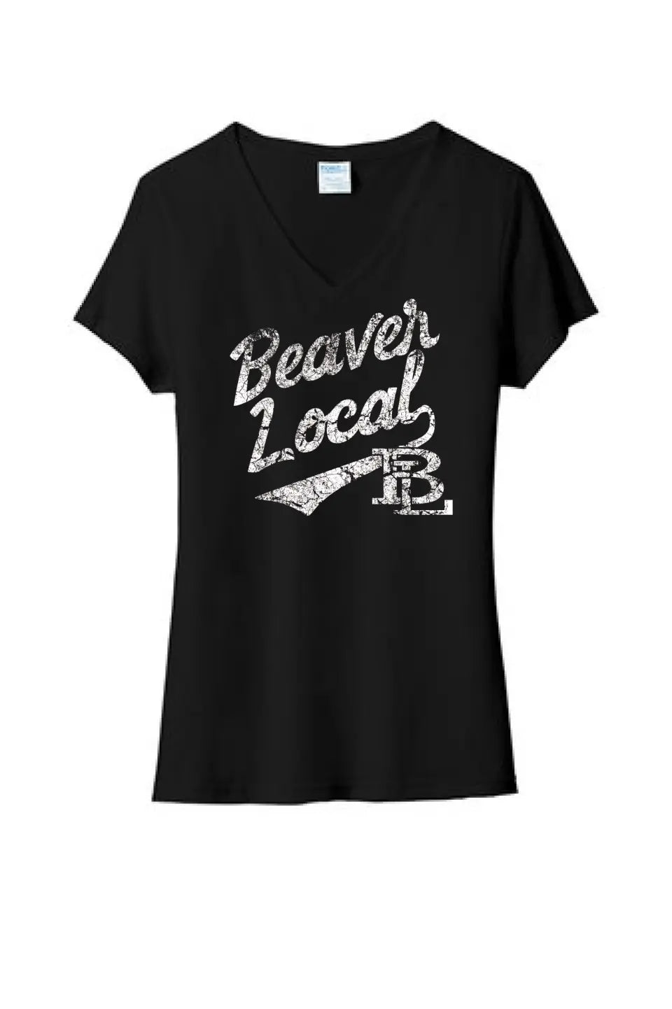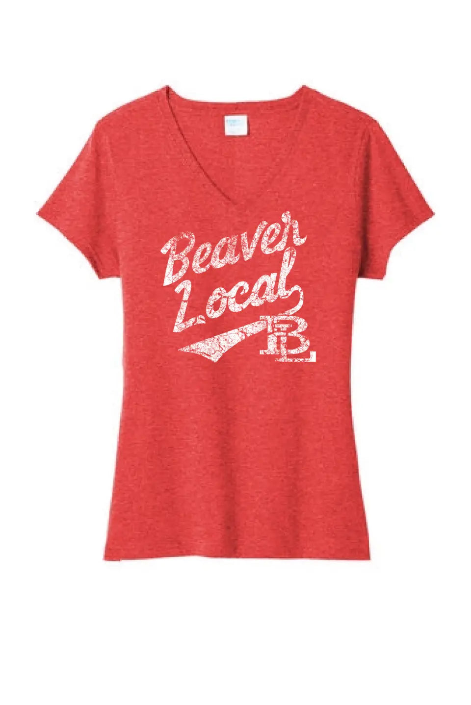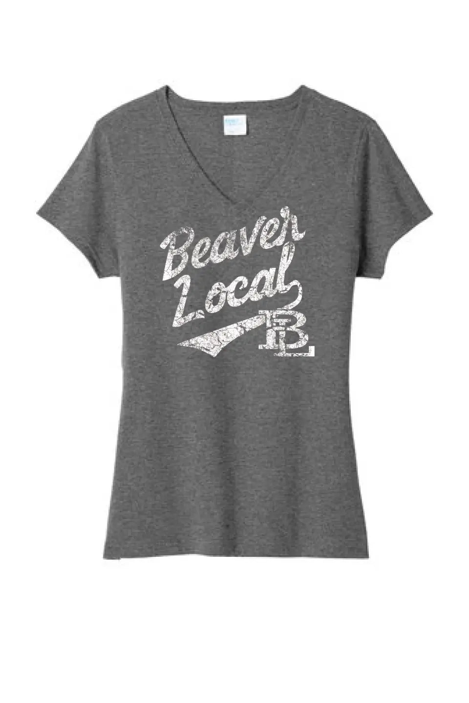 Beaver Local Script Distressed Ladies Tri-Blend V-Neck Tee