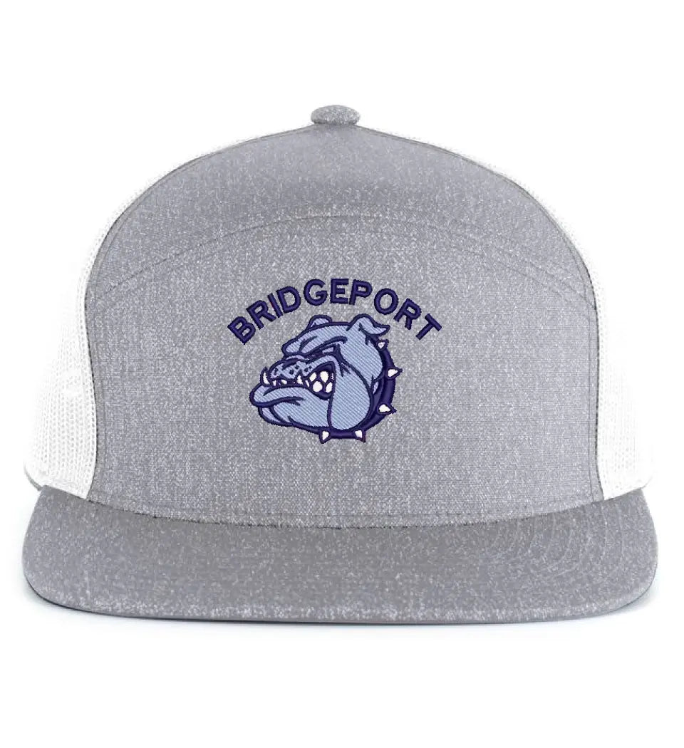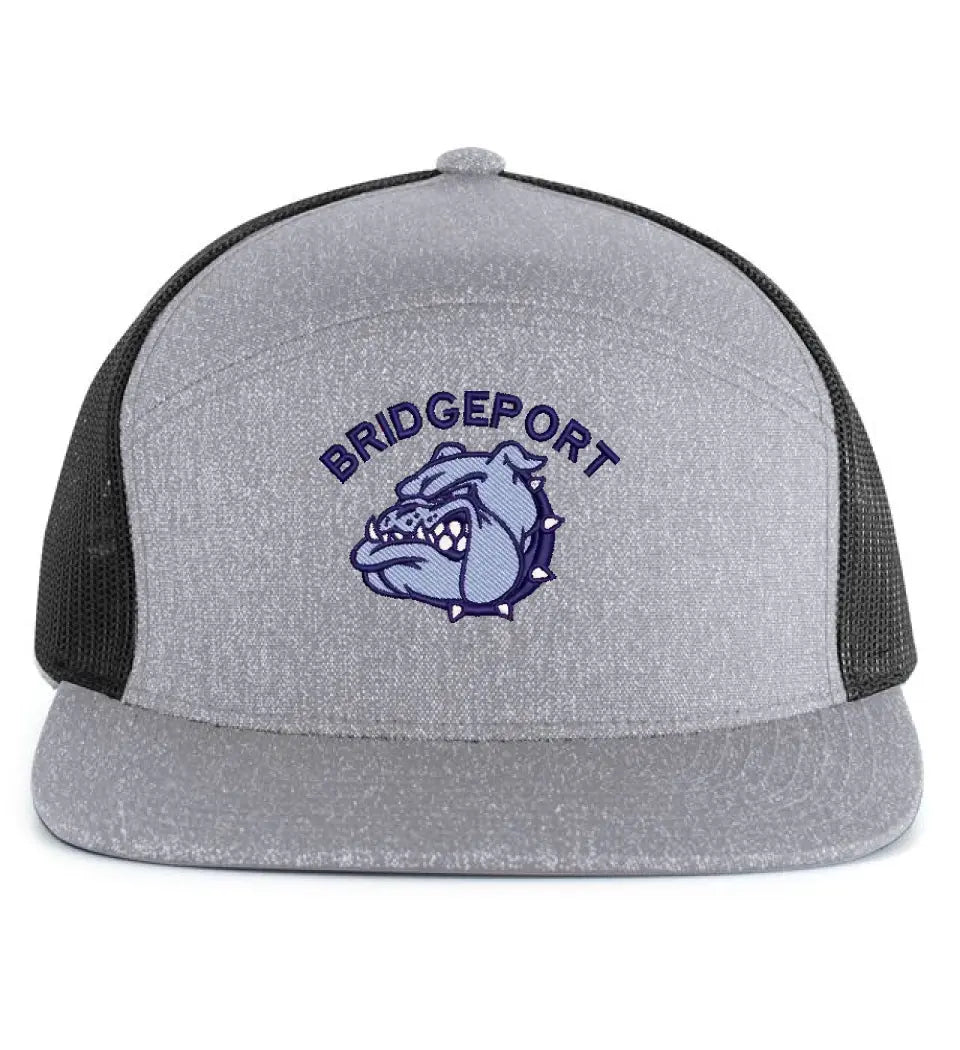 Bridgeport Bulldogs Embroidery on Grey 6-Panel Arch Trucker Snapback Cap