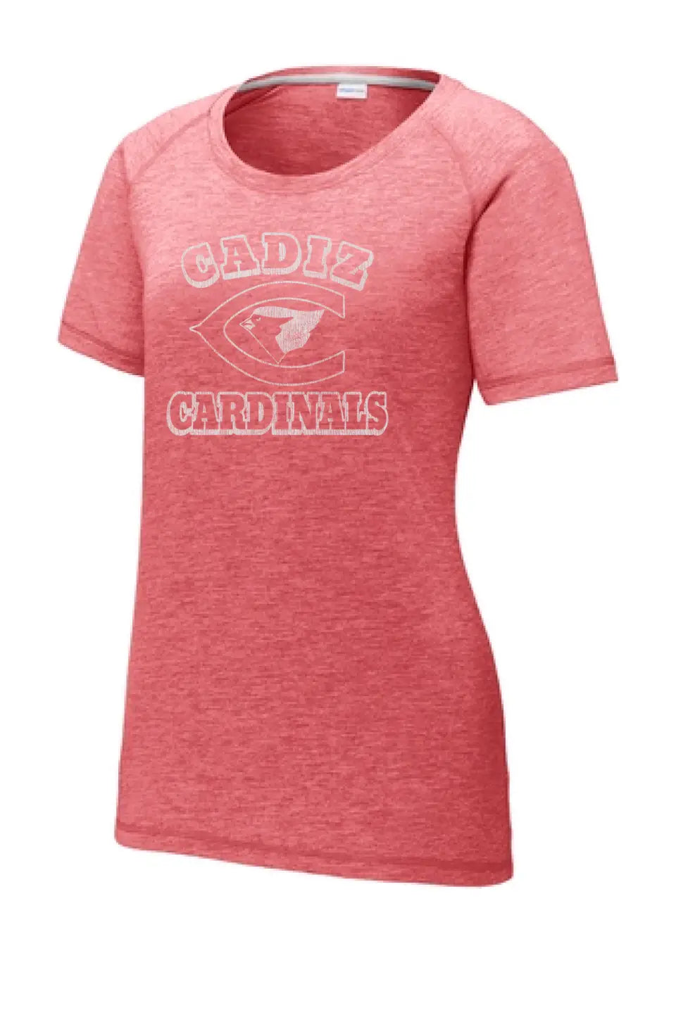 Cadiz Cardinal C Ladies PosiCharge Tri-Blend Wicking Scoop Neck Raglan Tee