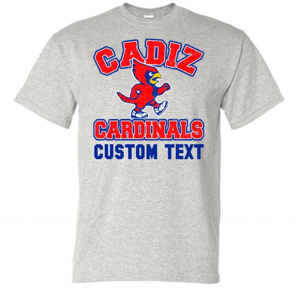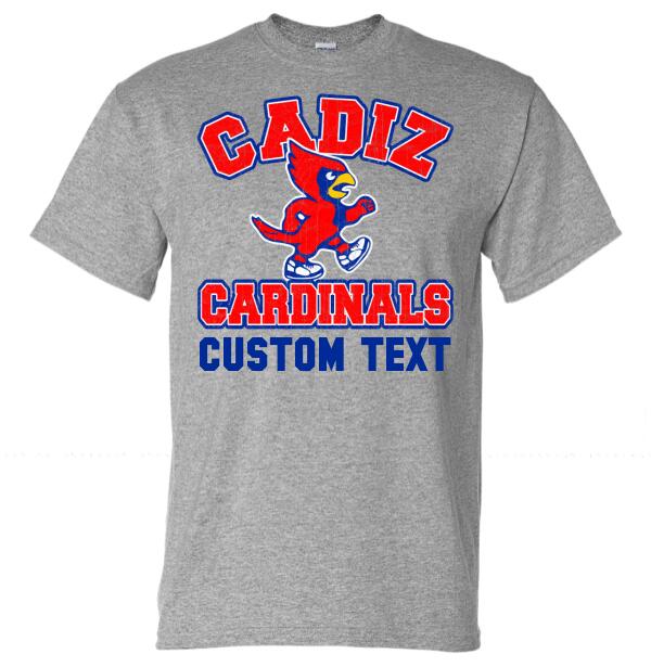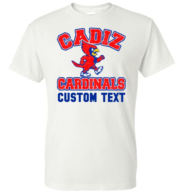 Cadiz Cardinal Walking Distressed Custom Text Gildan DryBlend T-Shirt