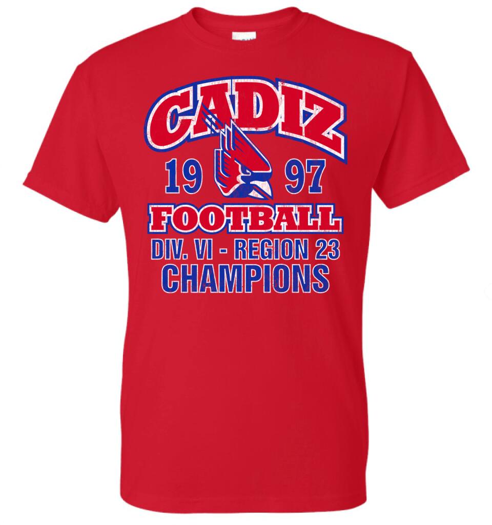 Cadiz Cardinals 1997 Football Region 23 Champs Gildan DryBlend T-Shirt