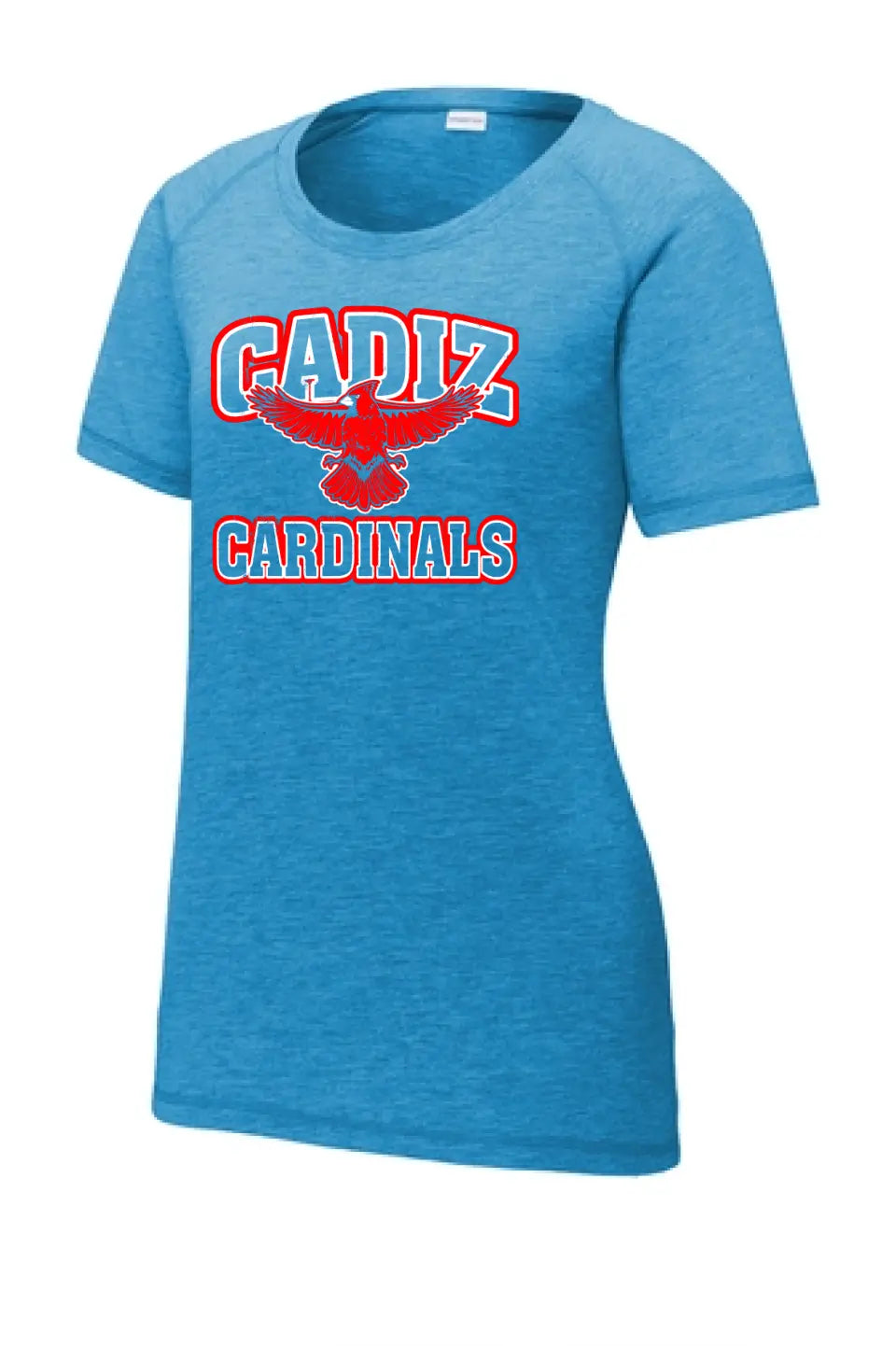 Cadiz Cardinals Distressed Wings Ladies PosiCharge Tri-Blend Wicking Scoop Neck Raglan Tee