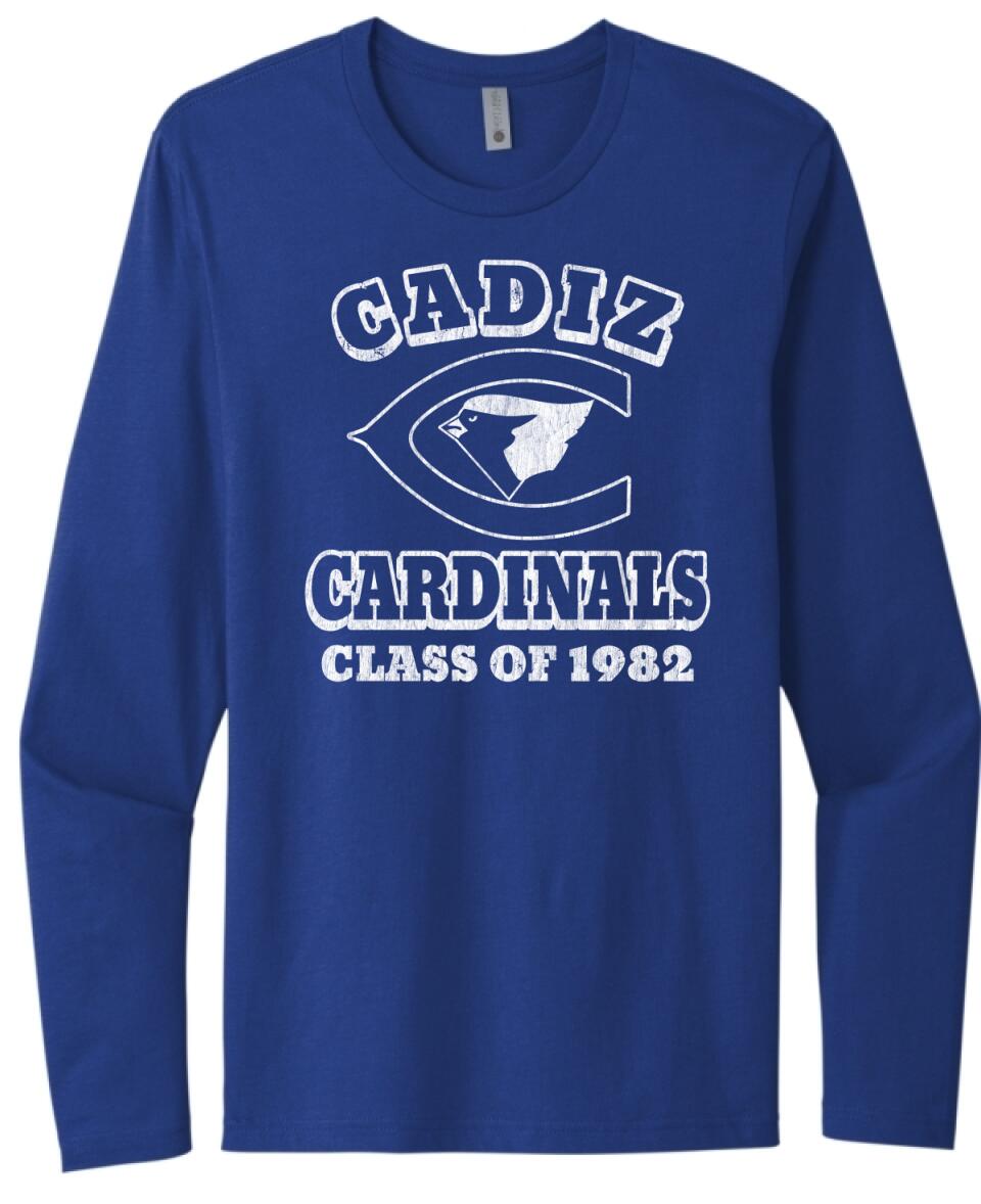 Cadiz High School Distressed C Class of 1982 Next Level Cotton Long Sleeve Tee