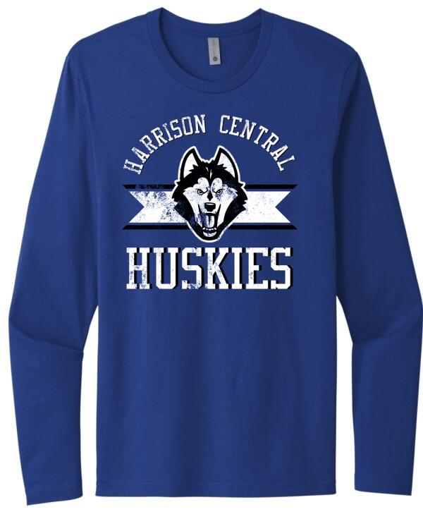 Harrison Central Distressed on Royal Next Level Cotton Long Sleeve Tee