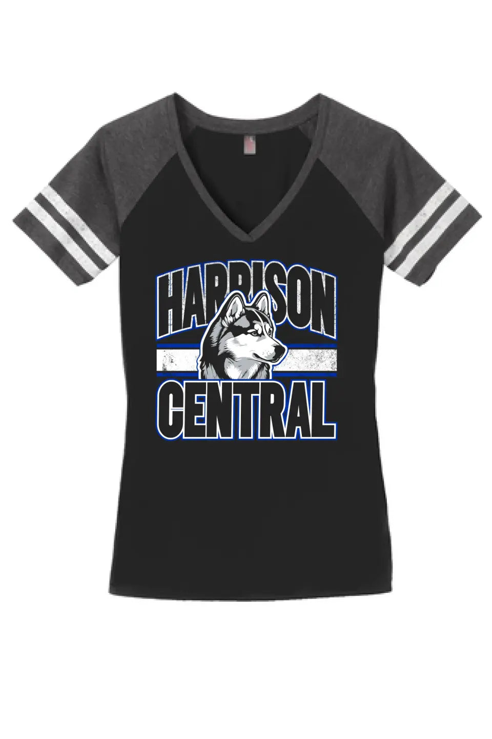 Harrison Central Husky Dog Arch Distressed Women's Game V-Neck Tee