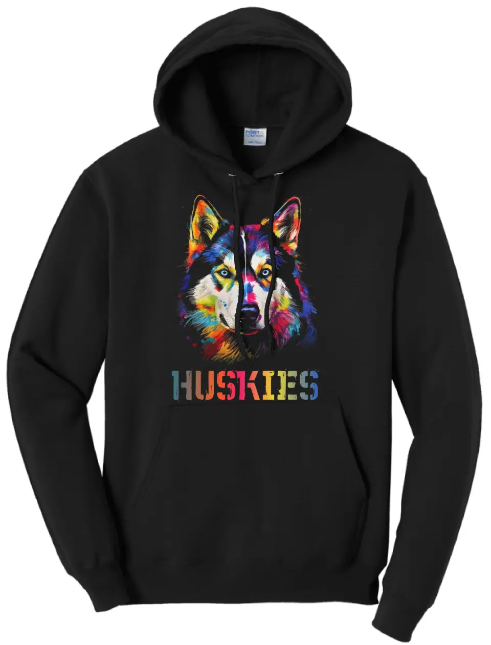 Harrison Central Husky Dog Rainbow Colors Core Fleece Hoodie