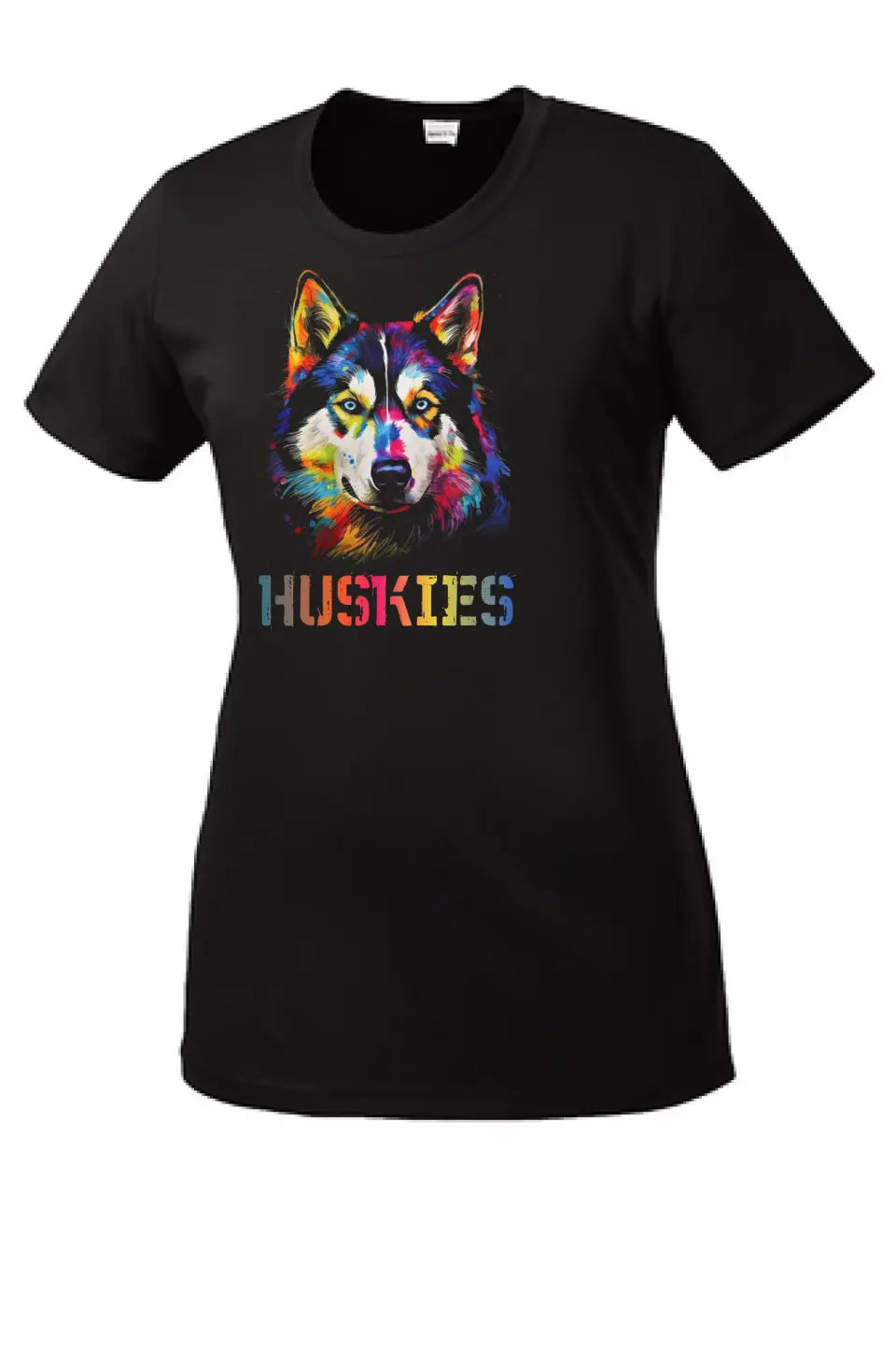 Harrison Central Husky Dog Rainbow Colors Ladies Competitor Tee