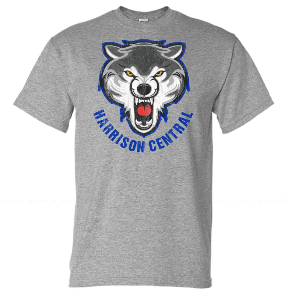 Harrison Central Mean Husky Red Distressed Design Gildan DryBlend T-Shirt