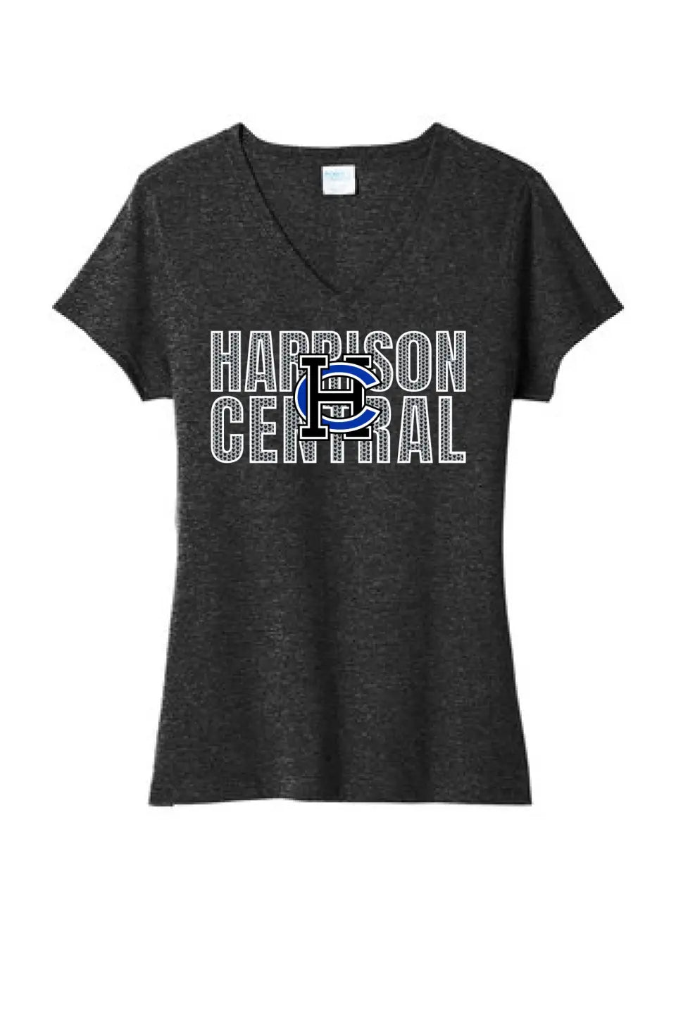 Harrison Central Valentine with Logo Ladies Tri-Blend V-Neck Tee
