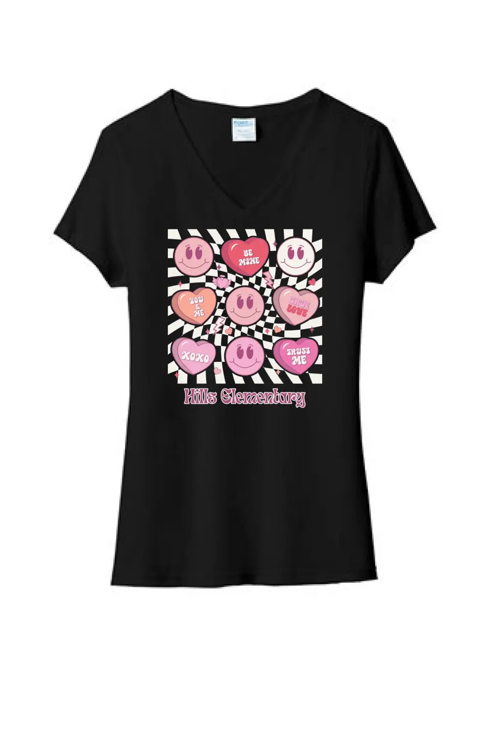 Hills Elem Hearts Ladies Tri-Blend V-Neck Tee