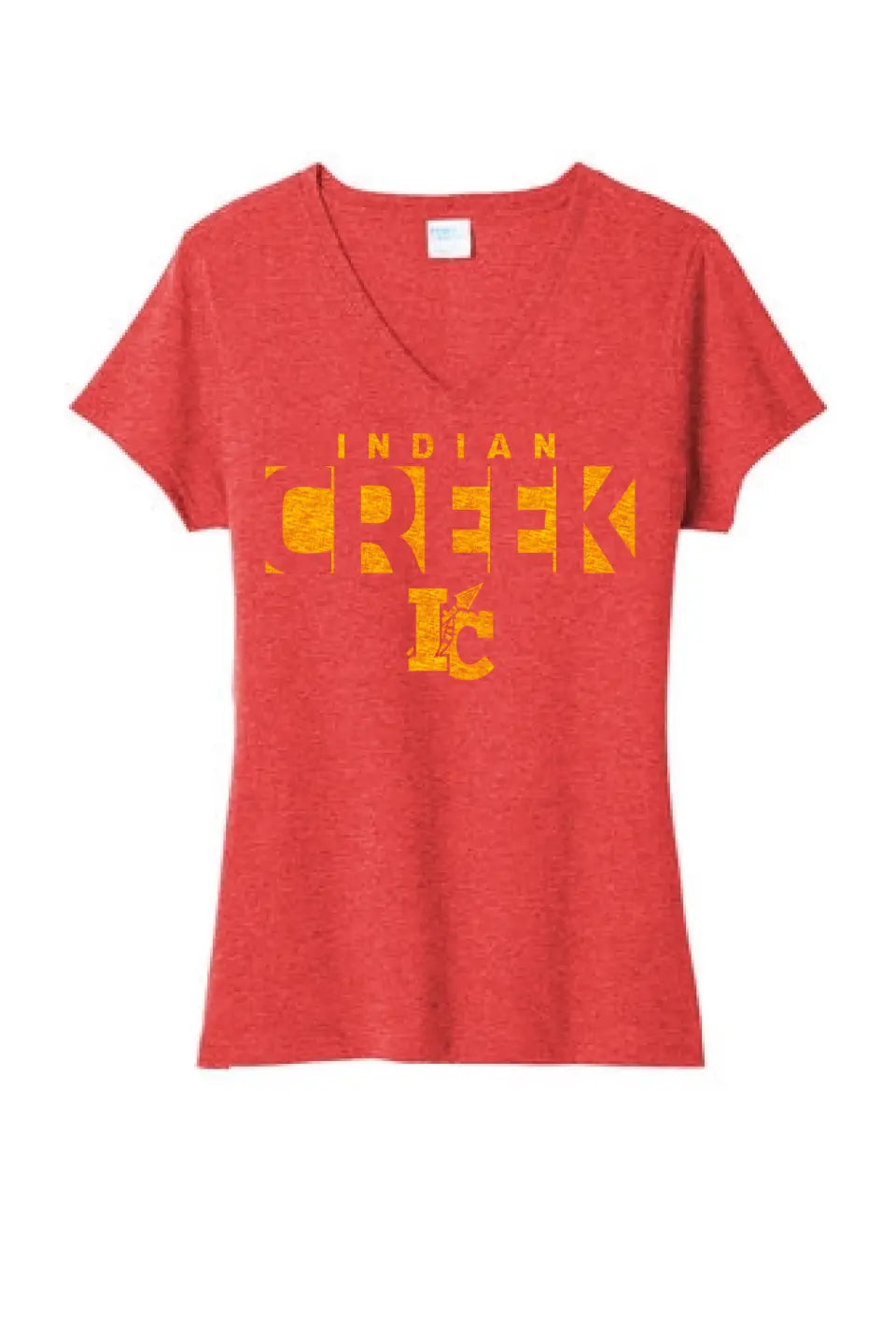 Indian Creek Distressed Background Ladies Tri-Blend V-Neck Tee
