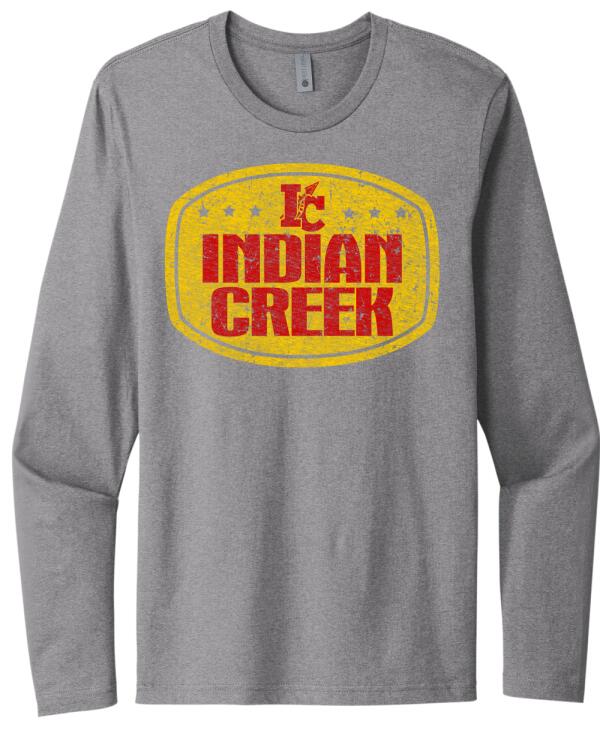 Indian Creek Distressed Badge Next Level Cotton Long Sleeve Tee