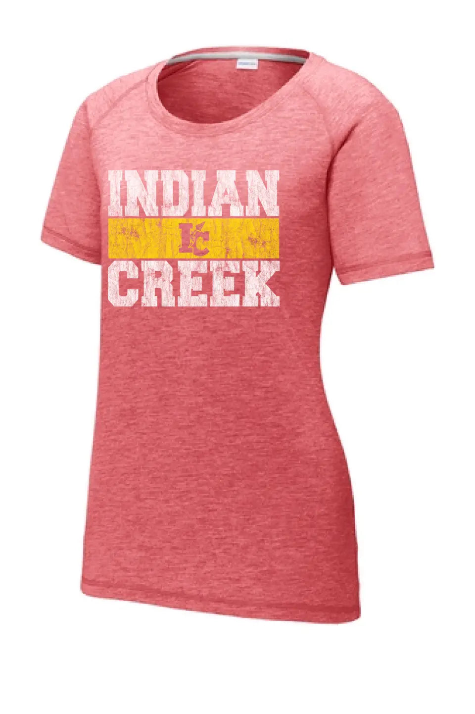 Indian Creek Distressed Block Ladies PosiCharge Tri-Blend Wicking Scoop Neck Raglan Tee