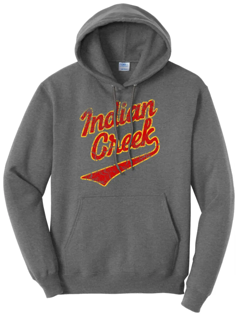 Indian Creek Distressed Cracked Script Core Fleece Hoodie
