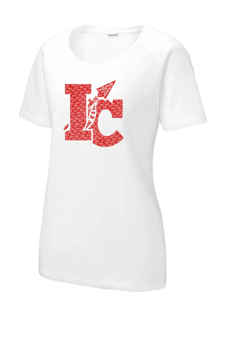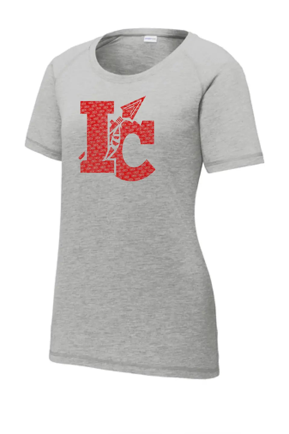 Indian Creek Distressed IC Text Ladies PosiCharge Tri-Blend Wicking Scoop Neck Raglan Tee