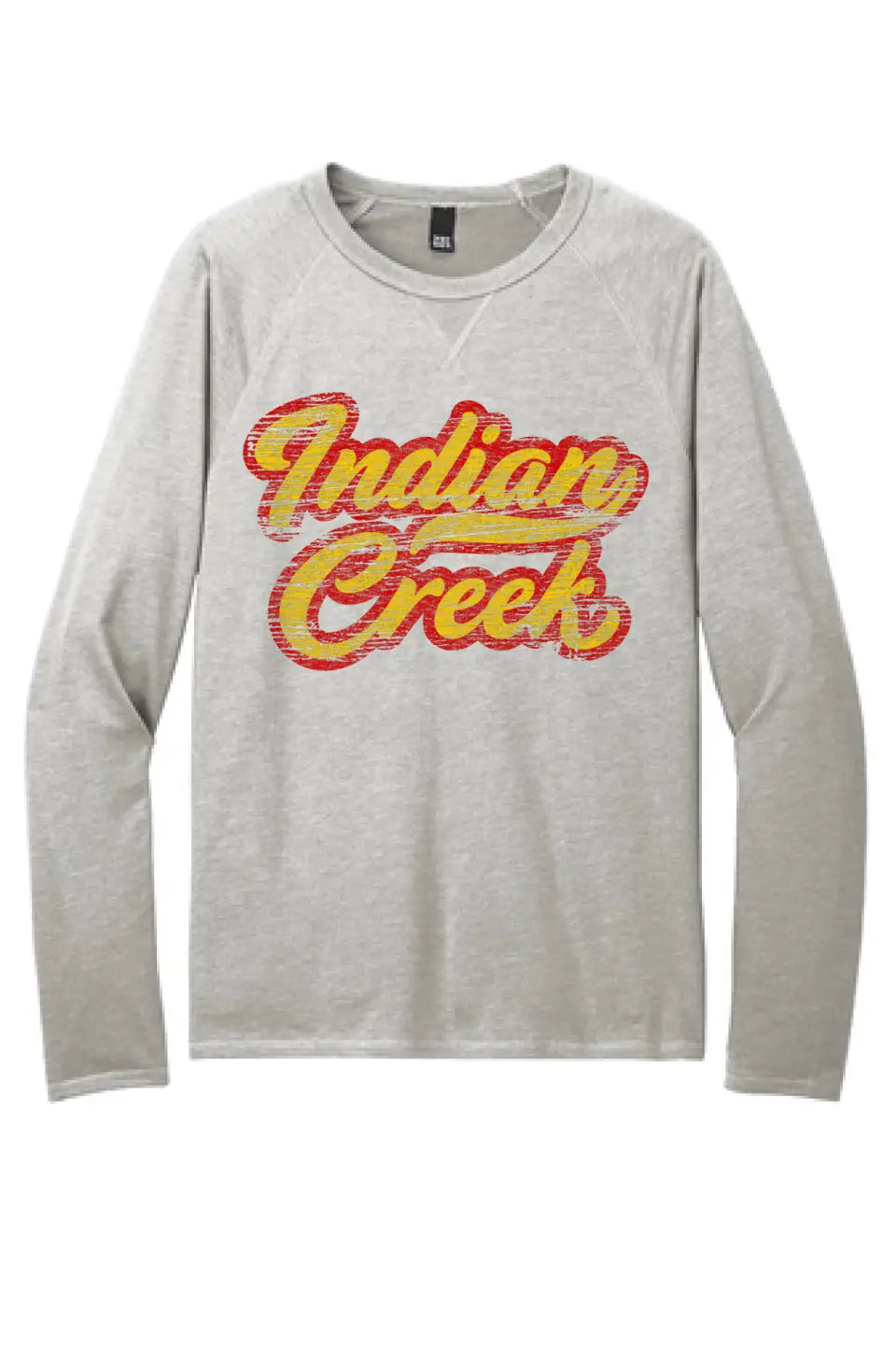 Indian Creek Distressed Script Tail Featherweight French Terry Long Sleeve Crewneck