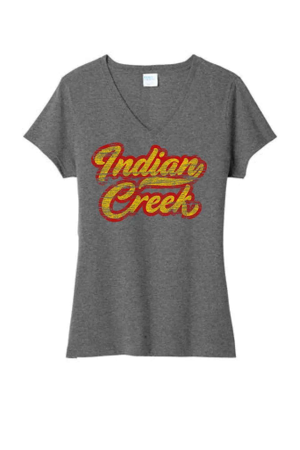 Indian Creek Distressed Script Tail Ladies Tri-Blend V-Neck Tee