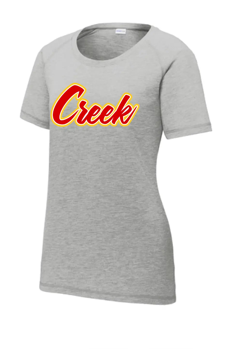 Indian Creek Script Ladies PosiCharge Tri-Blend Wicking Scoop Neck Raglan Tee