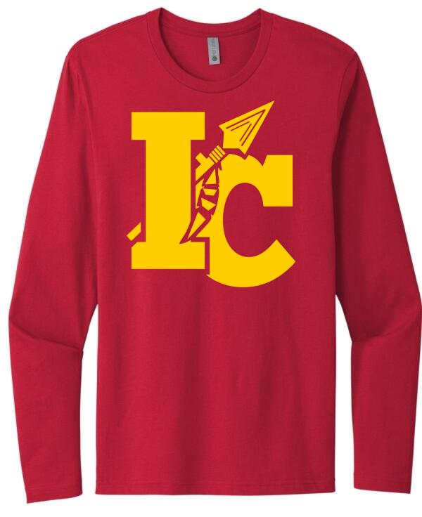 Indian Creek Logo on Red Next Level Cotton Long Sleeve Tee