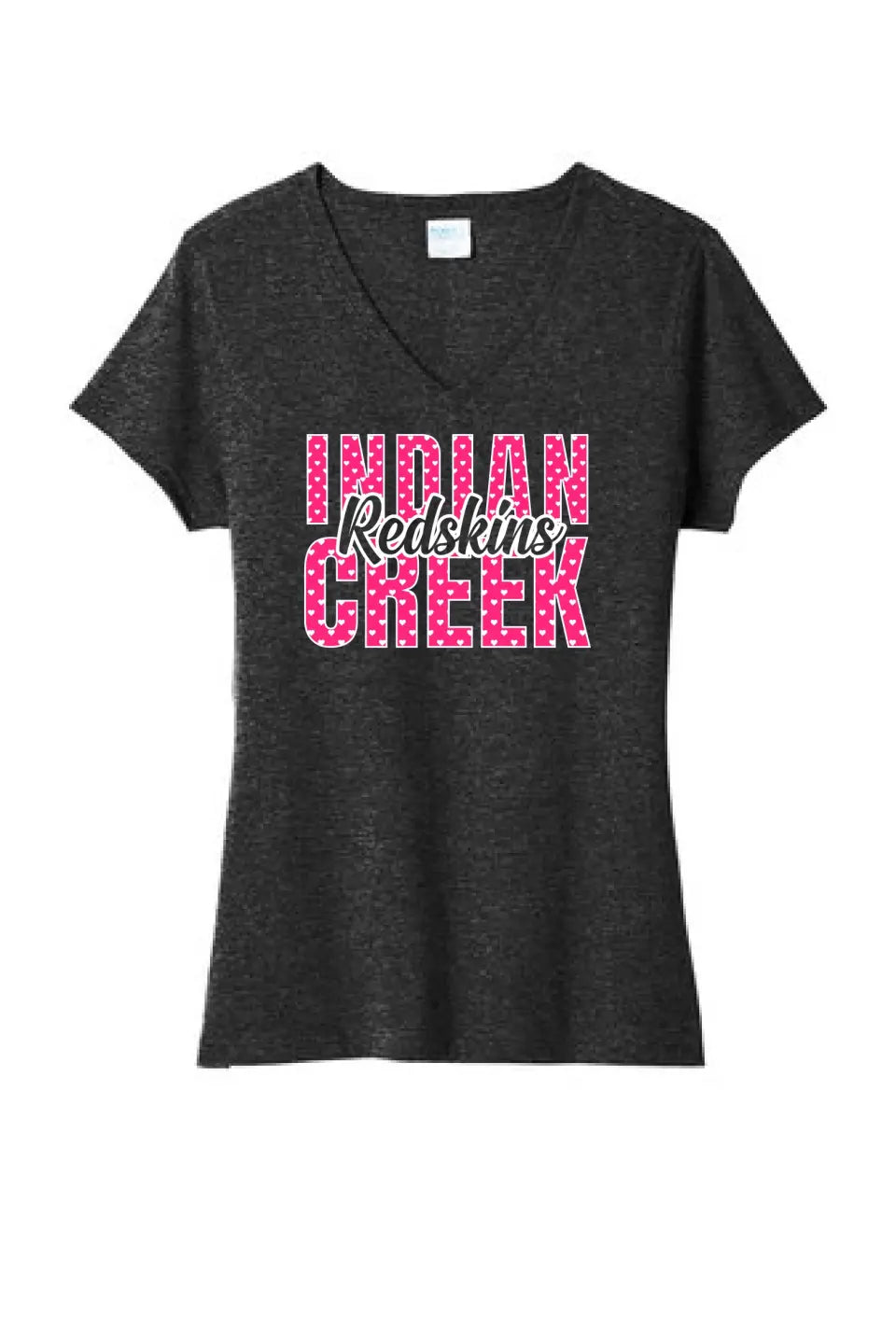 Indian Creek Redskins Hearts Ladies Tri-Blend V-Neck Tee