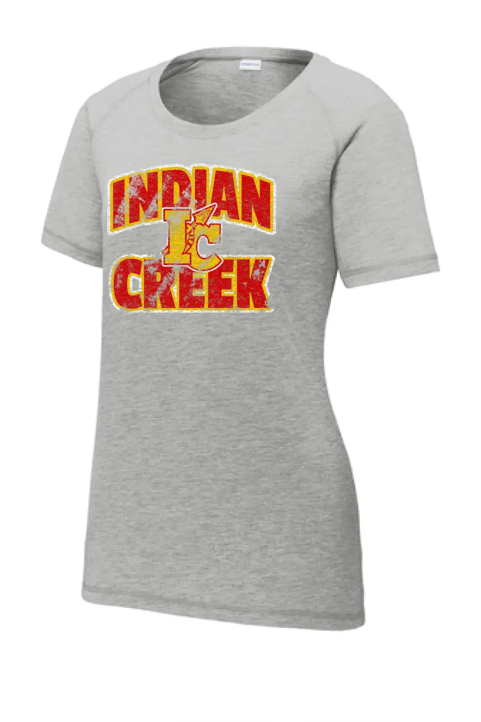Indian Creek Retro Ladies PosiCharge Tri-Blend Wicking Scoop Neck Raglan Tee