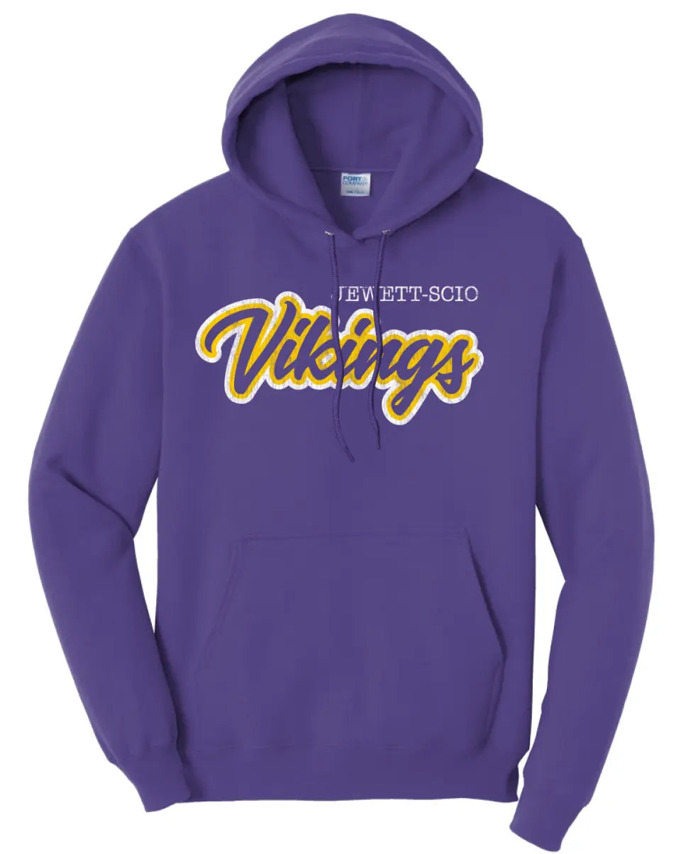Jewett-Scio Vikings Script Distressed Design Core Fleece Hoodie