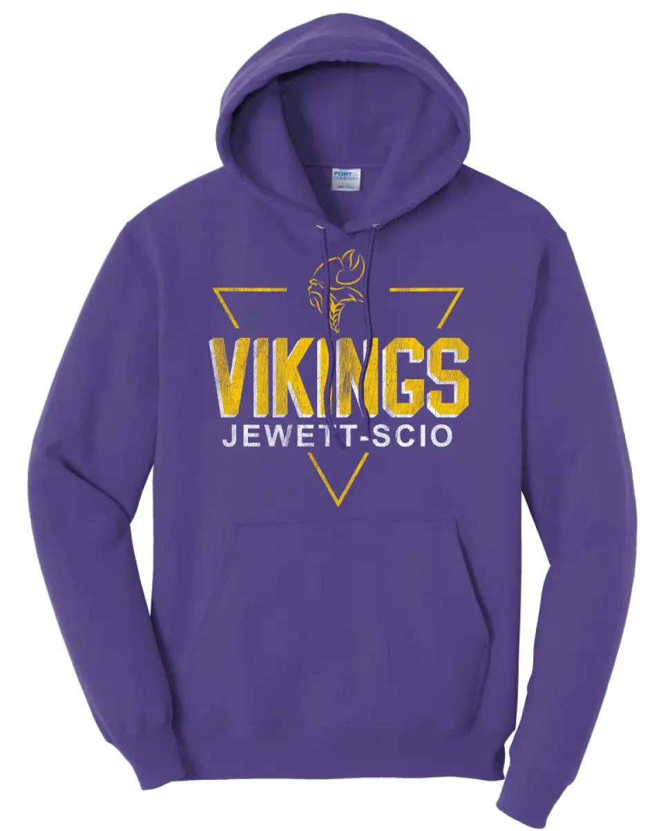 Jewett-Scio Vikings Triangle Badge Distressed Design Core Fleece Hoodie