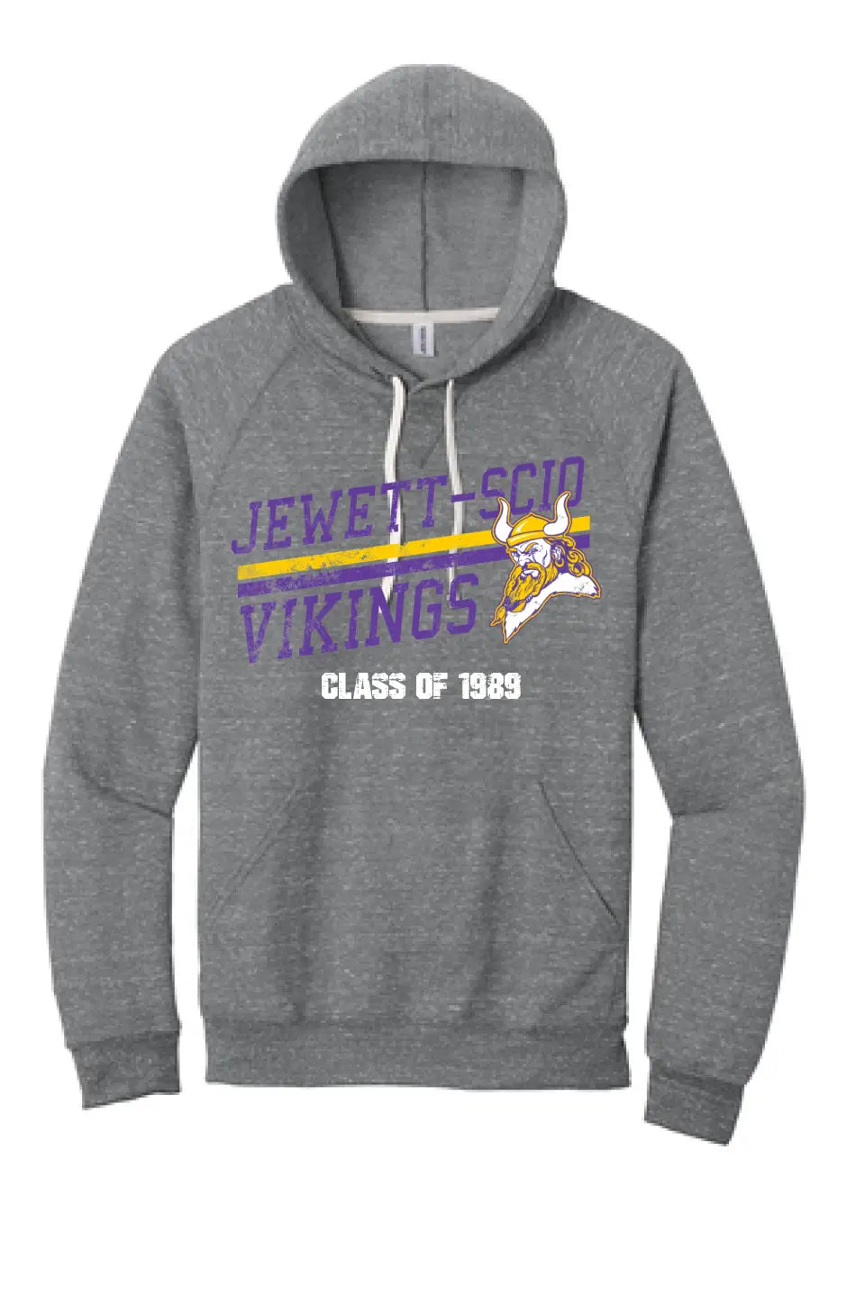 Jewett-Scio Vikings Rising Custom Graduation Year Distressed Design on Grey Jerzees Snow Heather French Terry Raglan Hoodie