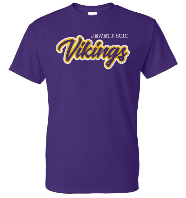 Jewett-Scio Vikings Script Distressed Design Gildan DryBlend T-Shirt