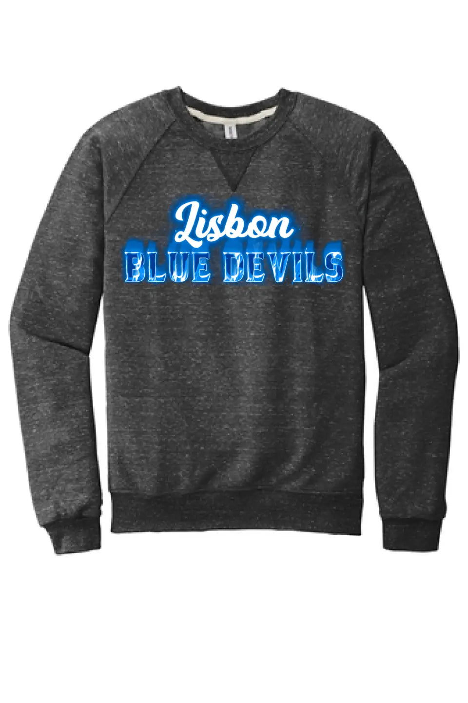 Lisbon Blue Devils Fire Jerzees Snow Heather French Terry Raglan Crew