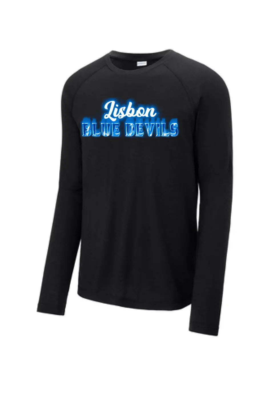 Lisbon Blue Devils Fire Long Sleeve Tri-Blend Wicking Raglan Tee