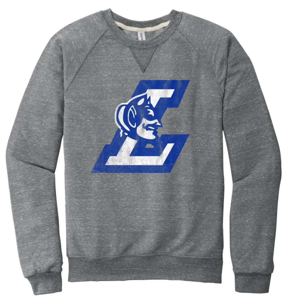 Lisbon Blue Devils Logo L Distressed Jerzees Snow Heather French Terry Raglan Crew