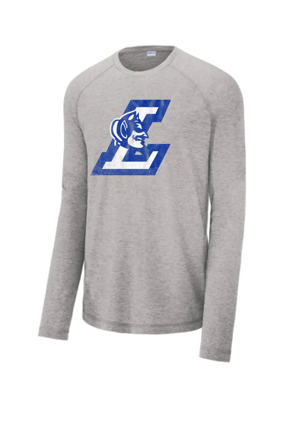 Lisbon Blue Devils Logo L Distressed Long Sleeve Tri-Blend Wicking Raglan Tee