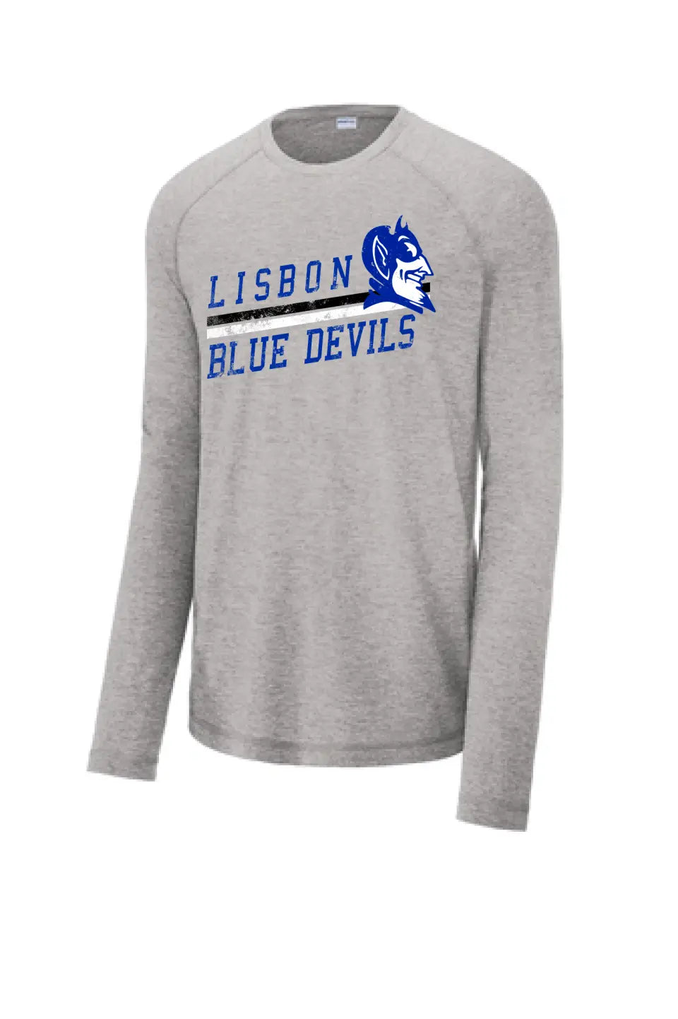 Lisbon Blue Devils Rising Distressed Long Sleeve Tri-Blend Wicking Raglan Tee