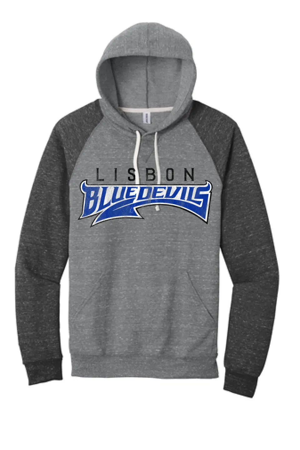 Lisbon Blue Devils Tail Distressed Jerzees Snow Heather French Terry Raglan Hoodie