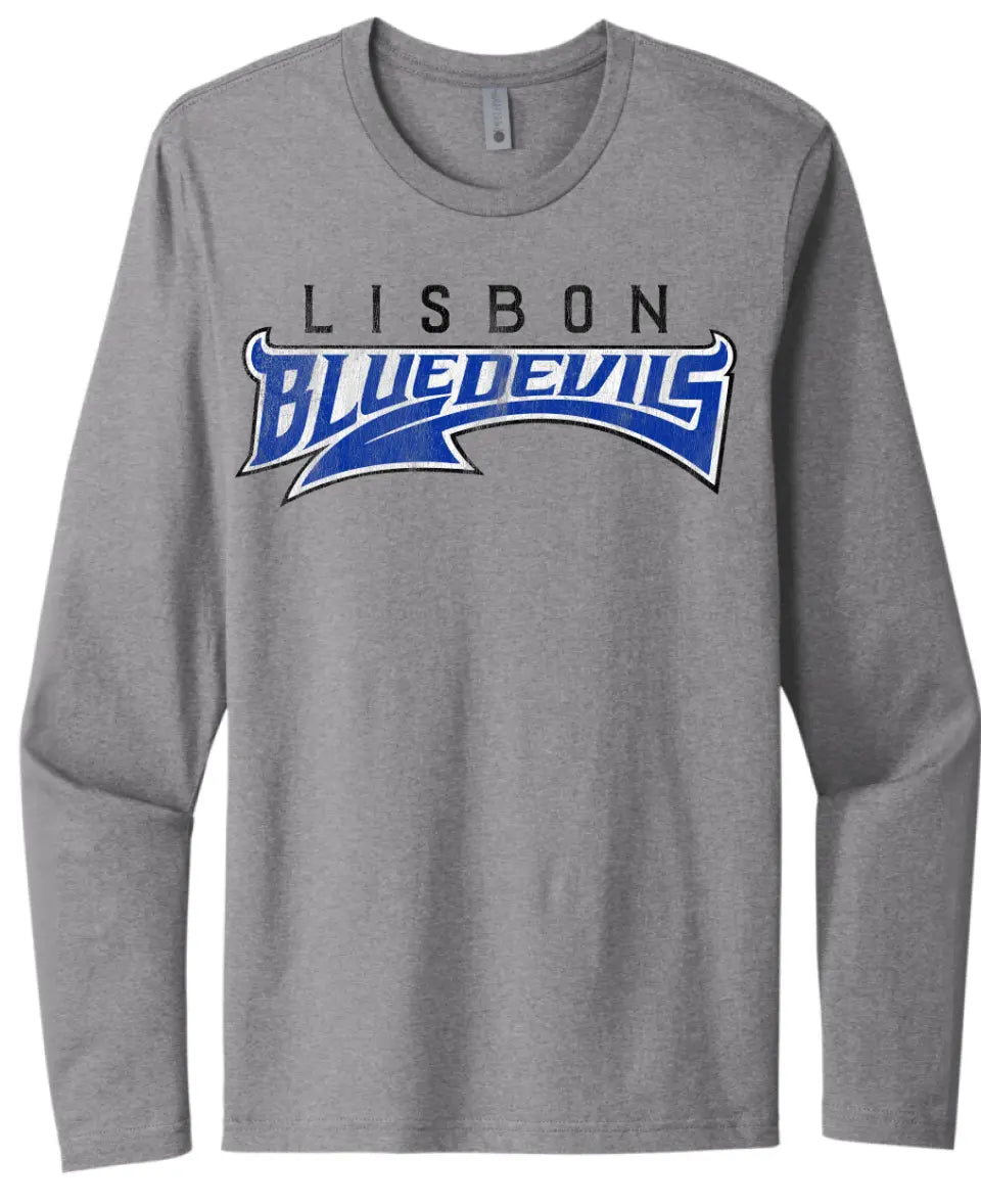 Lisbon Blue Devils Tail Distressed Next Level Cotton Long Sleeve Tee