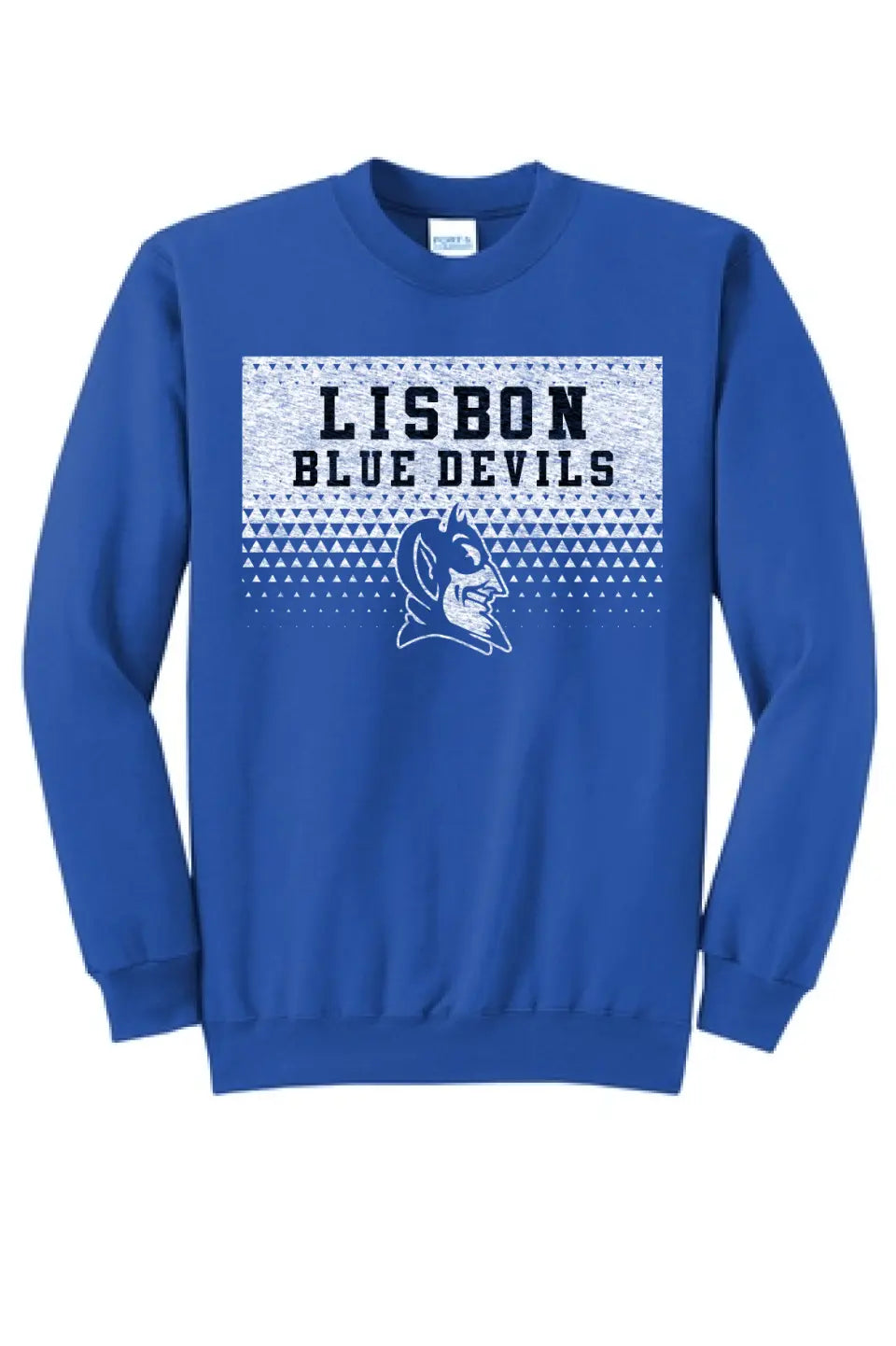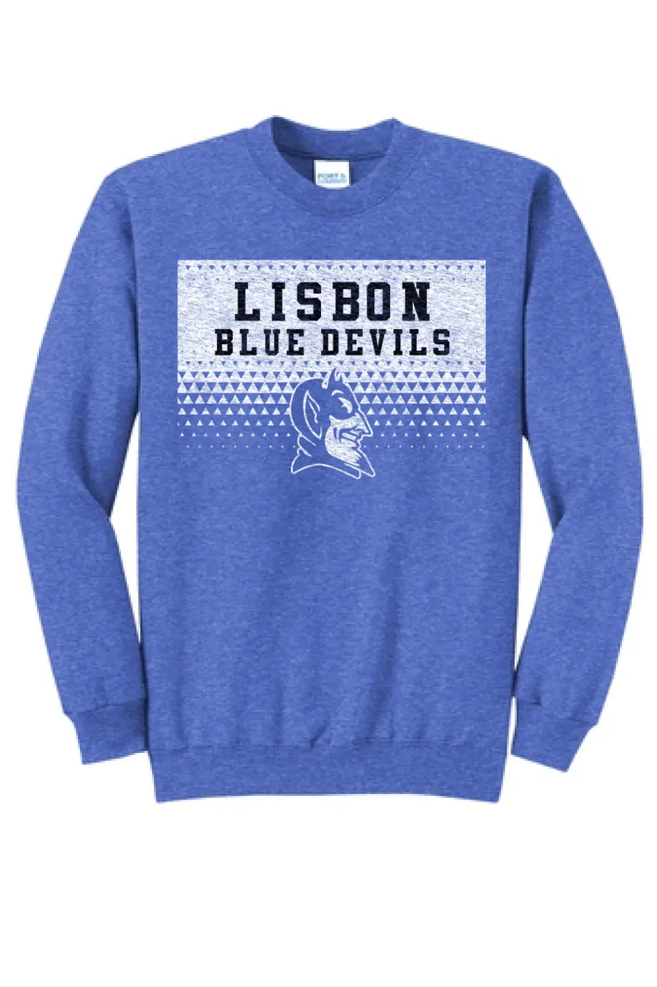 Lisbon Blue Devils Triangles Distressed Core Fleece Crewneck Sweatshirt