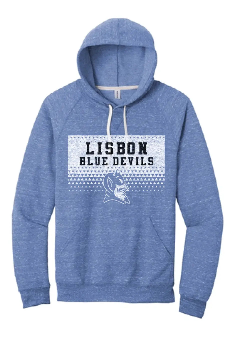 Lisbon Blue Devils Triangles Distressed Jerzees Snow Heather French Terry Raglan Hoodie