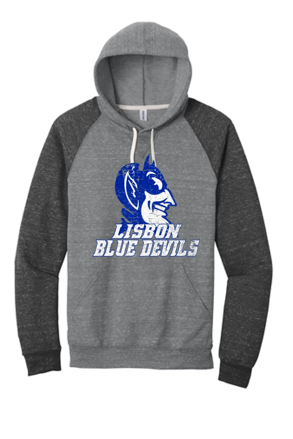 Lisbon Blue Devils Vast Distressed Jerzees Snow Heather French Terry Raglan Hoodie