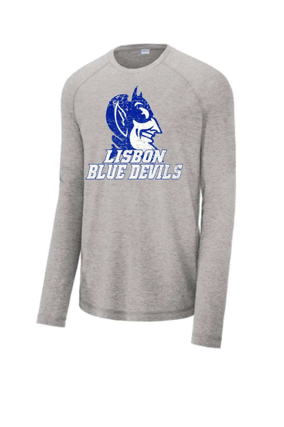 Lisbon Blue Devils Vast Distressed Long Sleeve Tri-Blend Wicking Raglan Tee
