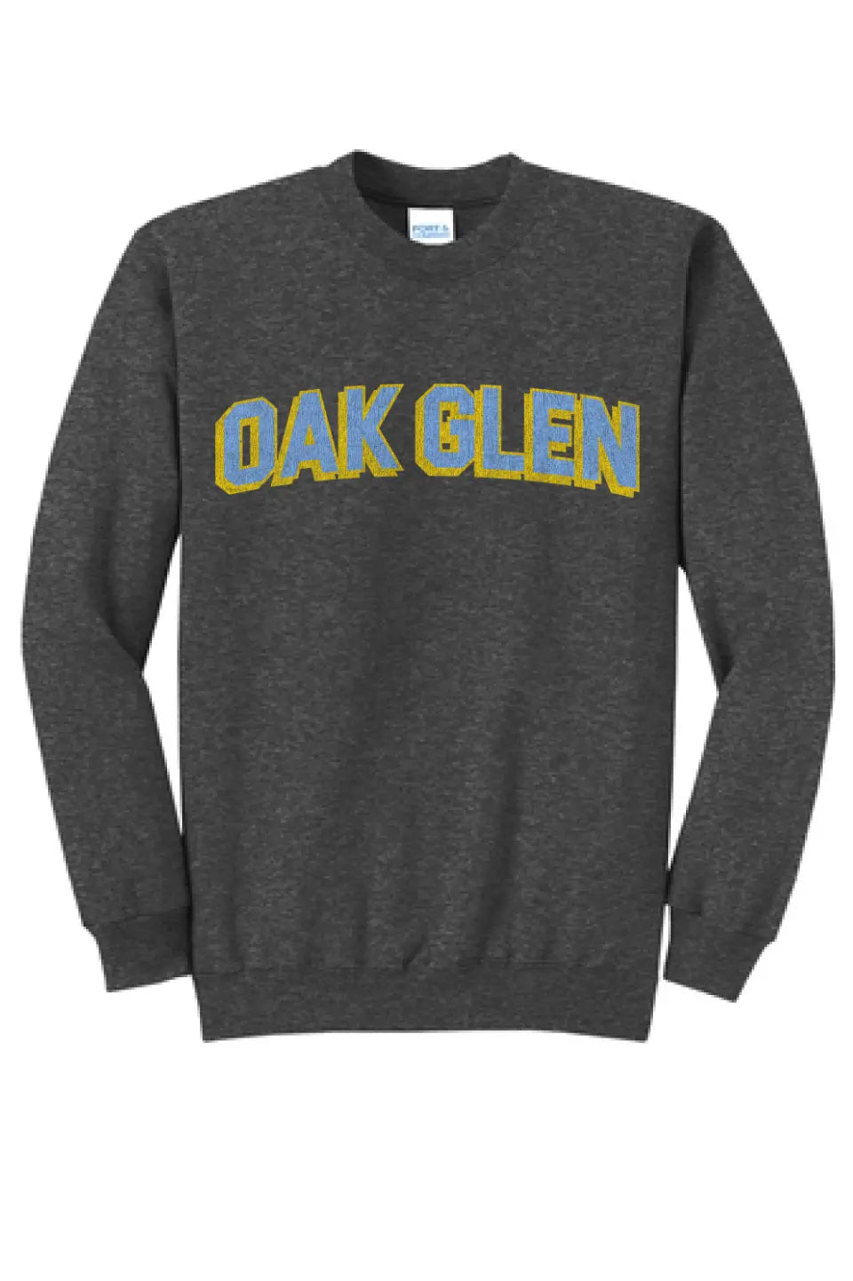 Oak Glen Distressed Letters Core Fleece Crewneck Sweatshirt