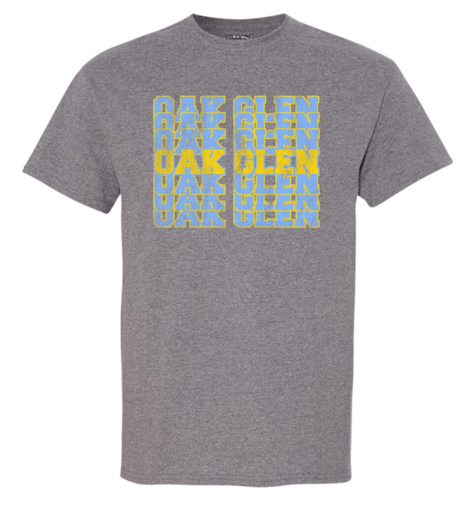 Oak Glen Distressed Repeating Gildan DryBlend T-Shirt